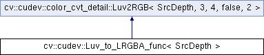Inheritance diagram for cv::cudev::Luv_to_LRGBA_func< SrcDepth >: