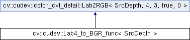 Inheritance diagram for cv::cudev::Lab4_to_BGR_func< SrcDepth >: