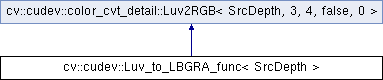 Inheritance diagram for cv::cudev::Luv_to_LBGRA_func< SrcDepth >: