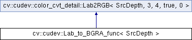 Inheritance diagram for cv::cudev::Lab_to_BGRA_func< SrcDepth >: