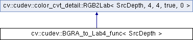 Inheritance diagram for cv::cudev::BGRA_to_Lab4_func< SrcDepth >: