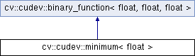 Inheritance diagram for cv::cudev::minimum< float >: