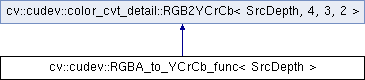 Inheritance diagram for cv::cudev::RGBA_to_YCrCb_func< SrcDepth >: