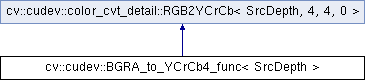 Inheritance diagram for cv::cudev::BGRA_to_YCrCb4_func< SrcDepth >: