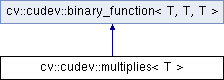 Inheritance diagram for cv::cudev::multiplies< T >: