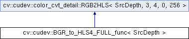 Inheritance diagram for cv::cudev::BGR_to_HLS4_FULL_func< SrcDepth >: