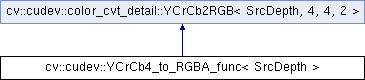 Inheritance diagram for cv::cudev::YCrCb4_to_RGBA_func< SrcDepth >: