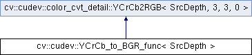 Inheritance diagram for cv::cudev::YCrCb_to_BGR_func< SrcDepth >: