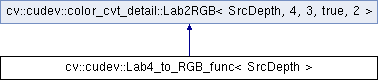 Inheritance diagram for cv::cudev::Lab4_to_RGB_func< SrcDepth >:
