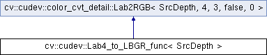 Inheritance diagram for cv::cudev::Lab4_to_LBGR_func< SrcDepth >: