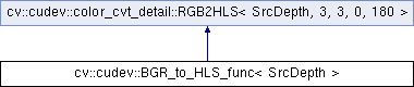 Inheritance diagram for cv::cudev::BGR_to_HLS_func< SrcDepth >: