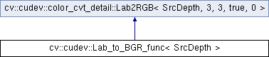 Inheritance diagram for cv::cudev::Lab_to_BGR_func< SrcDepth >: