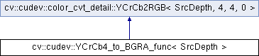 Inheritance diagram for cv::cudev::YCrCb4_to_BGRA_func< SrcDepth >: