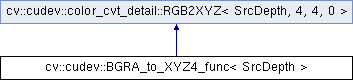 Inheritance diagram for cv::cudev::BGRA_to_XYZ4_func< SrcDepth >: