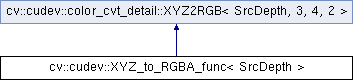 Inheritance diagram for cv::cudev::XYZ_to_RGBA_func< SrcDepth >: