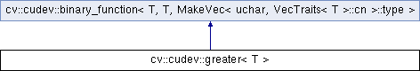 __device__ __forceinline__ MakeVec<uchar, VecTraits<T>::cn>::type cv::cudev::greater< T >::operator() ( typename TypeTraits< T >::parameter_type  a,