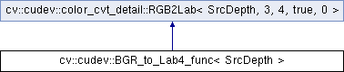 Inheritance diagram for cv::cudev::BGR_to_Lab4_func< SrcDepth >: