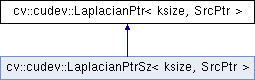 Inheritance diagram for cv::cudev::LaplacianPtr< ksize, SrcPtr >: