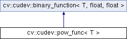 Inheritance diagram for cv::cudev::pow_func< T >: