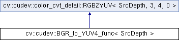 Inheritance diagram for cv::cudev::BGR_to_YUV4_func< SrcDepth >: