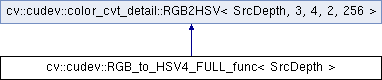 Inheritance diagram for cv::cudev::RGB_to_HSV4_FULL_func< SrcDepth >: