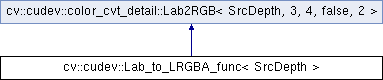 Inheritance diagram for cv::cudev::Lab_to_LRGBA_func< SrcDepth >: