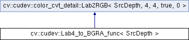 Inheritance diagram for cv::cudev::Lab4_to_BGRA_func< SrcDepth >: