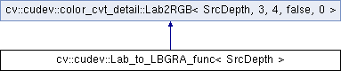 Inheritance diagram for cv::cudev::Lab_to_LBGRA_func< SrcDepth >: